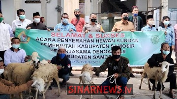 Hewan Kurban tersebut, diserahkan Bupati Samosir Vandiko T. Gultom, ST didampingi Sekretaris Daerah Kabupaten Samosir Drs. Jabiat Sagala, M. Hum, Kadis Kominfo Rohani Bakara, Kabag PKP Hartopo Manik, Camat Pangururan Bresman Simbolon. Turut hadir Polres Samosir yang diwakili Wakapolres Samosir Kompol R. Affandi, Kepala Kantor Kemenag Samosir diwakili Yunaedy Sitorus dan undangan lainnya.