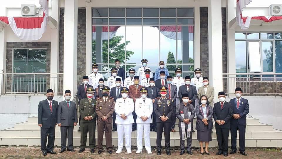 Samosir , Bupati Samosir Vandiko T. Gultom bersama Wakil Bupati Samosir Drs. Martua Sitanggang, MM dan Forkopimda serta Pimpinan Perangkat Daerah, pimpin upacara Peringatan Kemerdekaan ke-76 Republik Indonesia Tingkat Kabupaten Samosir di Halaman Kantor Bupati Samosir, Selasa (17/08).