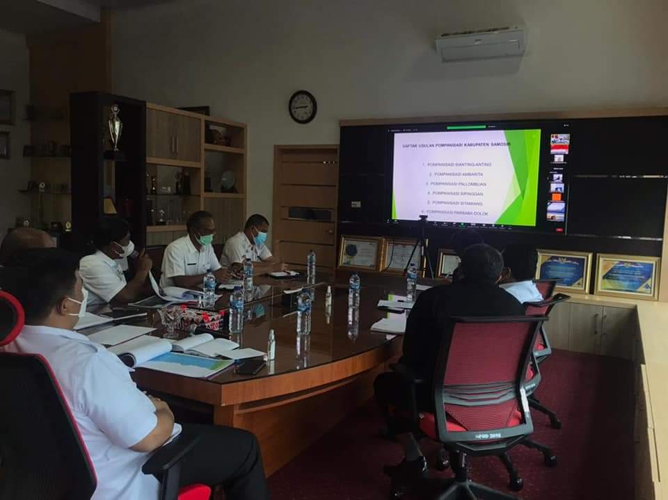 Pangururan , Pemerintah Kabupaten (Pemkab) Samosir melaksanakan Diskusi Sinkronisasi dan Harmonisasi Program Pembangunan Infrastruktur, Rabu (17/8/2021) melalui zoom meeting.