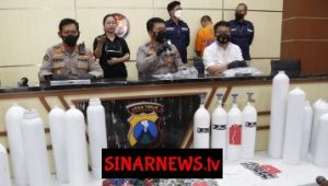 SURABAYA, 18 Agust 2021 – Ditreskrimsus Polda Jatim membongkar usaha rumahan pembuatan tabung oksigen palsu. Pelaku menggunakan tabung apar atau alat pemadam api ringan bekas pakai.