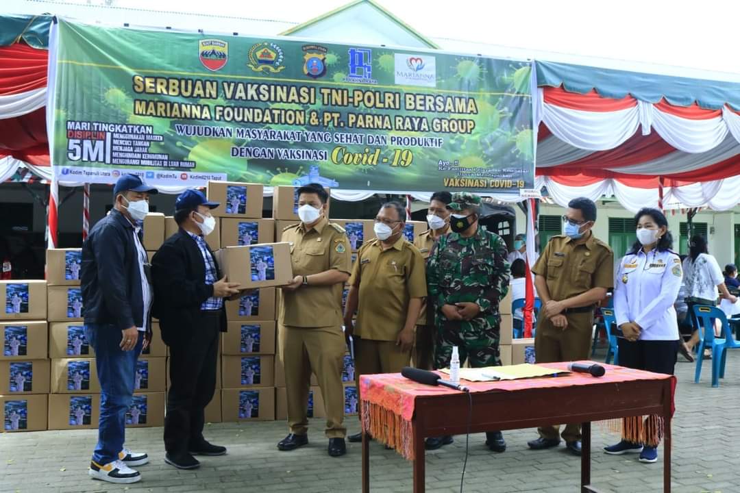 Bupati Samosir Vandiko T. Gultom, ST mengapresiasi dan menyampaikan terima kasih yang sebesar-besarnya kepada Mariana Foundation dan PT. Parna Raya Grup atas bantuan vaksinasi ini. Bantuan ini merupakan bentuk rasa kekeluargaan yang erat dan kepedulian dari perusahaan kepada masyarakat samosir.