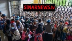 SAMOSIR, Tingginya antusiasme warga untuk melakukan vaksinasi, membuat antrean peserta vaksin, di Kabupaten Samosir, Sumatera Utara, tak terkendali. Warga berkerumun dan tidak menjaga jarak, saat menunggu giliran.