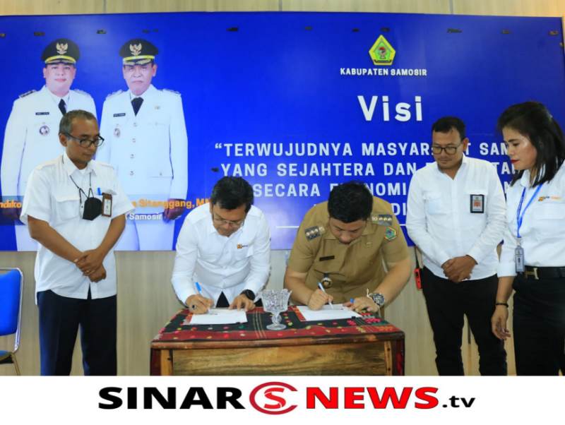 SAMOSIR – Serah terima pengelolaan sementara Peningkatan Kualitas Permukiman Kumuh Kawasan Pangururan dilakukan oleh Bupati Samosir Vandiko Timotius Gultom, bersama Kepala Balai Prasarana Permukiman Wilayah Sumatera Utara Syafriel Tansier. Peningkatan Kualitas Permukiman Kumuh Kawasan Pangururan kepada Pemkab Samosir, yang meliputi perbaikan Drainase Kota Pangururan, Penerangan Jalan Umum dan Penataan Taman Sitolu Hae Horbo, di Ruang Lobby Kantor Bupati Samosir, Selasa ( 20/12/2022 ).