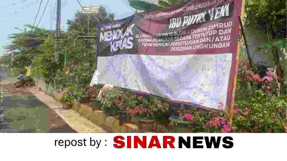 Mereka membentangkan spanduk bertanda tangan warga berisi penolakan, yang dipasang di depan rumah PY dan di gerbang perumahan.