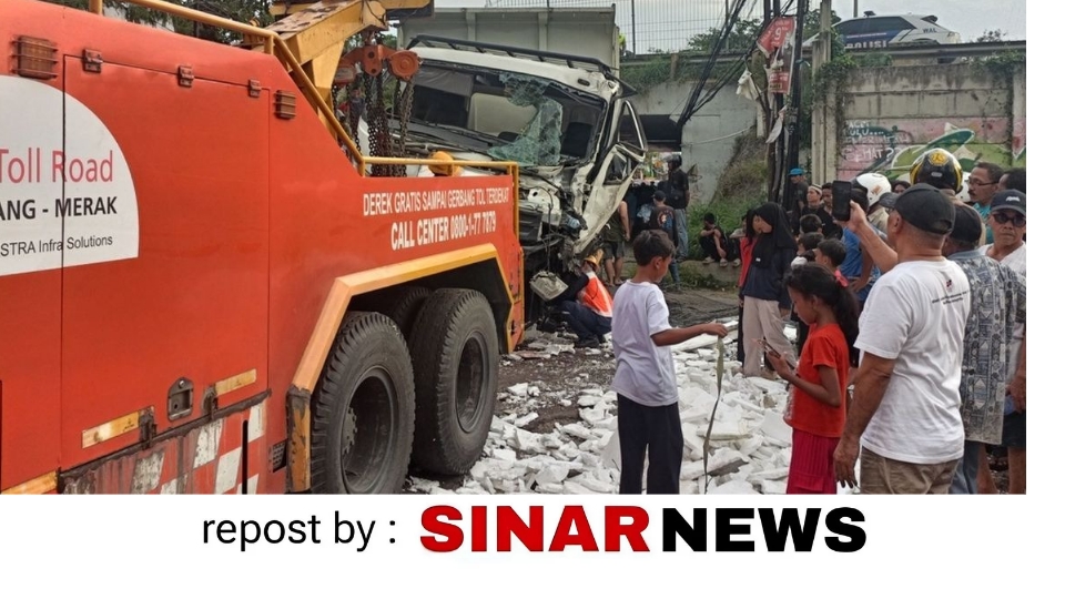 Truk Tronton Terjun Bebas dari Tol Tangerang-Merak, Timpa Pikap dan Motor di Bawahnya