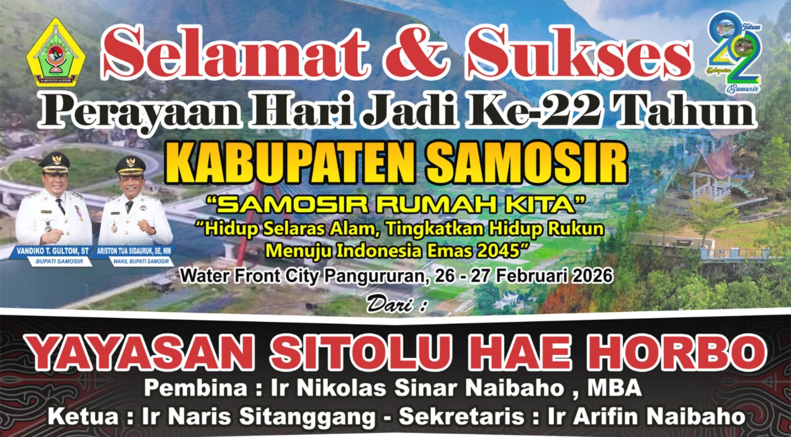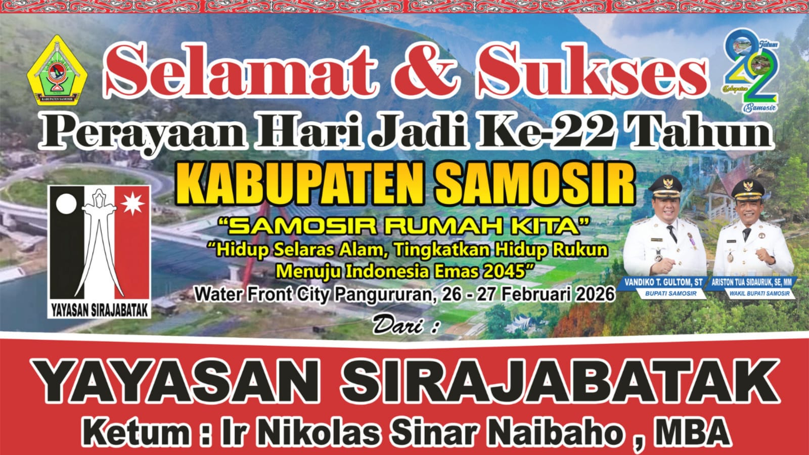 Samosir – Pemerintah Kabupaten Samosir memastikan peringatan hari jadi ke-22 daerah tersebut akan diselenggarakan selama dua hari, yakni 26–27 Februari di kawasan Segmen 5 Waterfront City, Pangururan. Kepastian ini disampaikan dalam konferensi pers oleh Dinas Komunikasi dan Informatika Kabupaten Samosir di Aula Kantor Bupati.